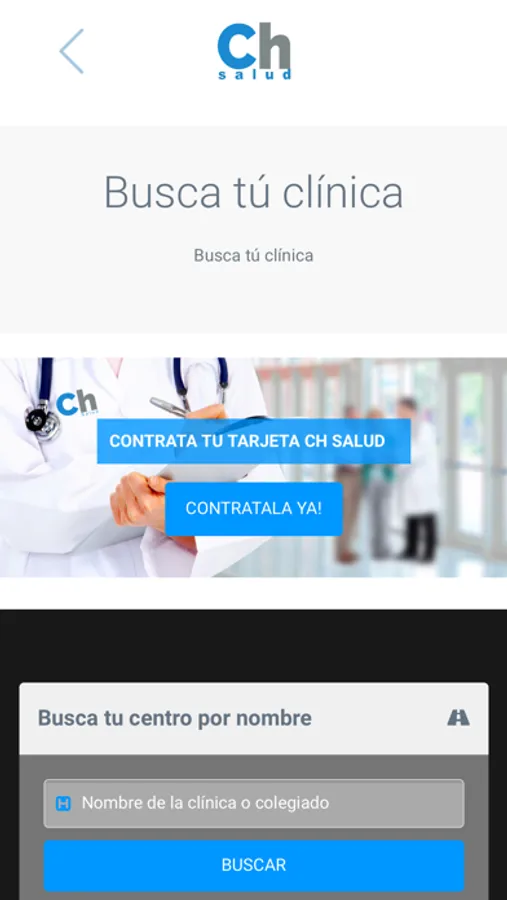 Accederá a un cuadro médico elaborado exclusivamente para nuestros clientes y que Ud. podrá consultar a través de la página web: www.chsalud.es , desde esta aplicación o bien a través del tfno. 902.92.98.99, donde se atenderán sus consultas y se gestionarán sus citas médicas.