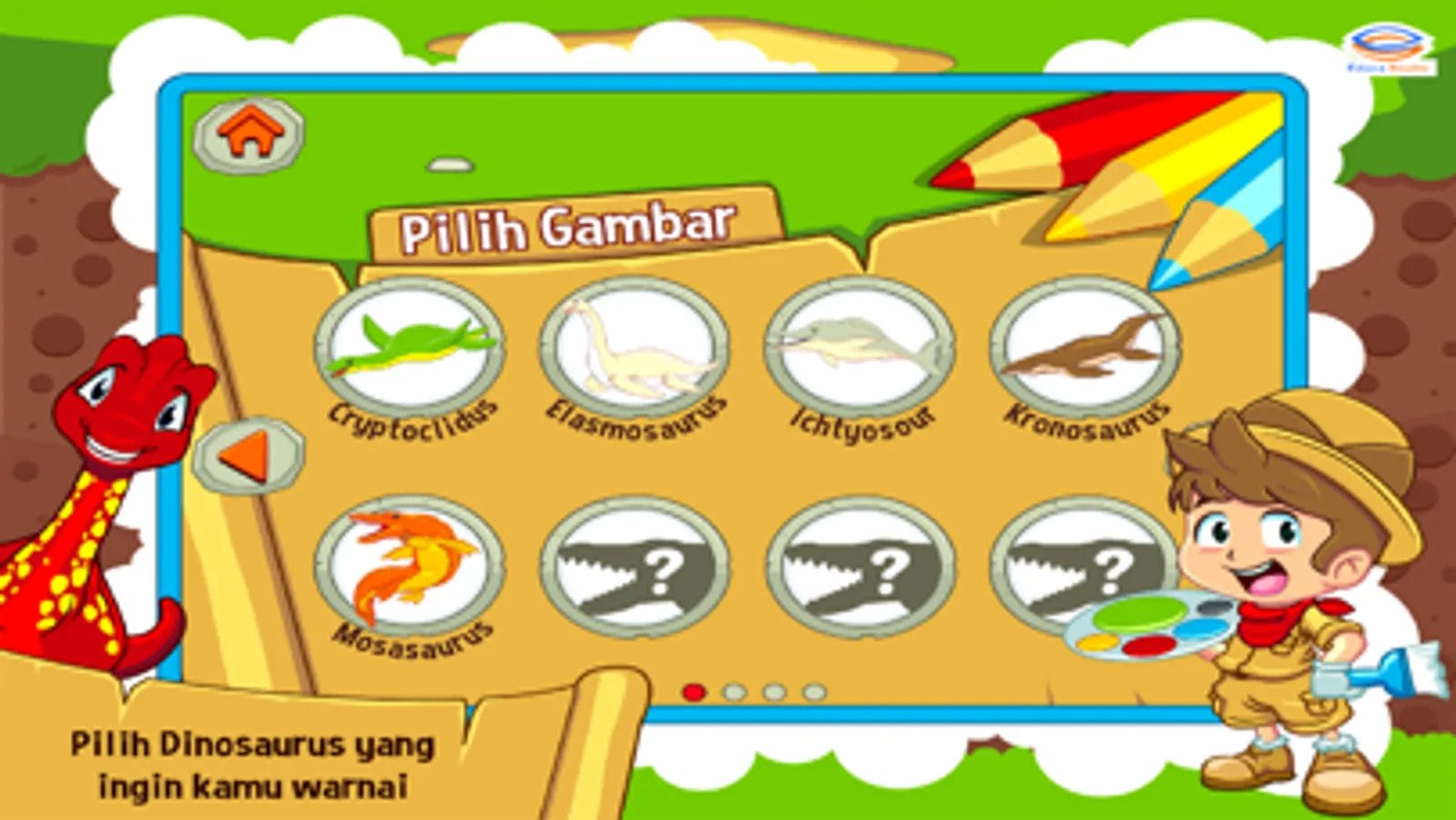 Marbel Mewarnai Dinosaurus - Aplikasi pendidikan yang menemani aktifitas bermain anak. Semua anak suka mewarnai. Dan aktifitas ini termasuk salah satu kegemaran anak-anak. Dalam seri ini, anak-anak akan diajak untuk belajar mewarnai berbagai macam Dinosaurus. Ada lebih dari 30 gambar Dinosaurus yang tersedia. Ayo bunda, kita ajak anak-anak untuk belajar mengenal berbagai macam Dinosaurus sambil mewarnainya. Bersama Marbel Mewarnai Dinosaurus, anak-anak akan dikenalkan pada dunia belajar yang lebih menyenangkan.