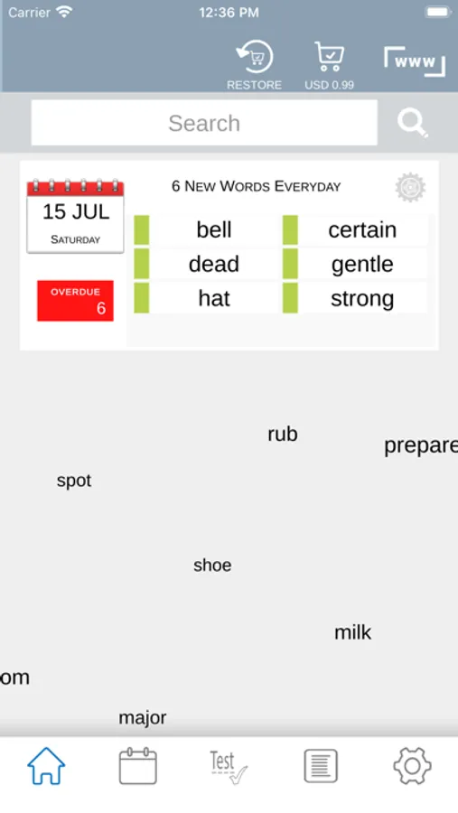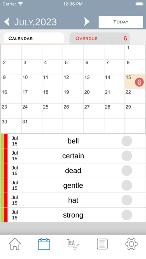 What sets our app apart is the vibrant color-coded system to track your progress. New words are highlighted in red while words you haven't yet learned but are in your list or calendar are marked in orange. You can click on any word to reveal its meaning.
