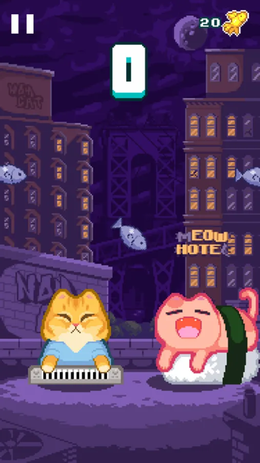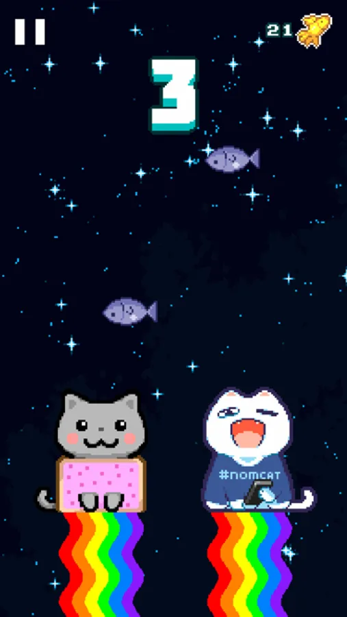 Help still Nom Cat's hunger! Tap and hold to open the mouths of both cats to feed them with endless waves of fish. The more fish you eat, the higher your score. Beat your friends on Game Center or brag about your score on social network. But, watch out! You have to stay focused to avoid the flying bombs. You don't want the cute cats to explode, do you? Unlock some of the cutest cat characters by collecting as many goldfish as you can!