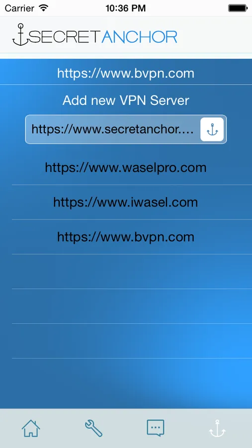 Secret Anchor is a tool that gives the existing users of iWASEL, WASEL Pro, bVPN Services the ability to instantly download VPN connection settings on their devices (iPhone, iPad or iPod touch) .