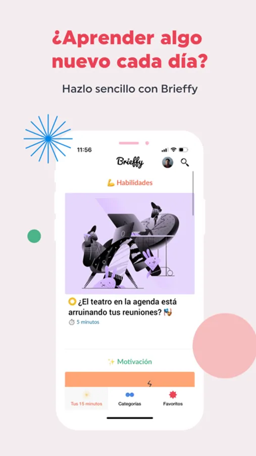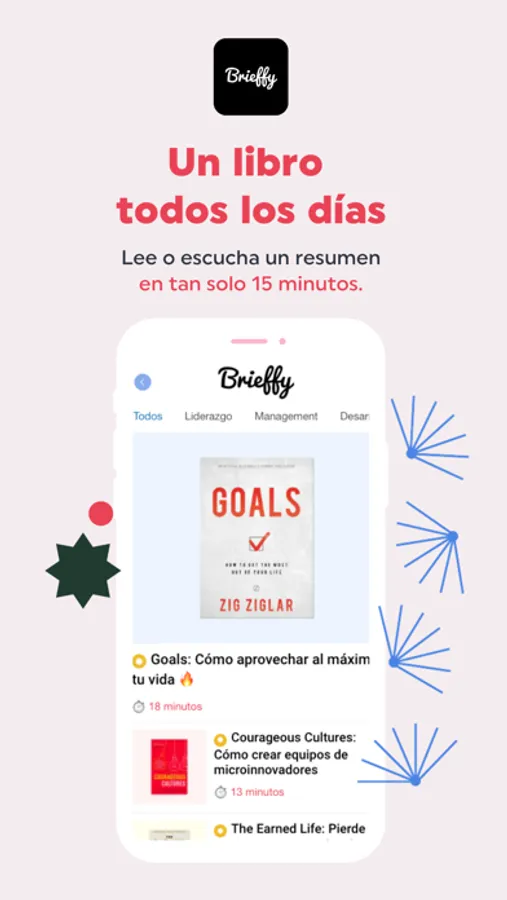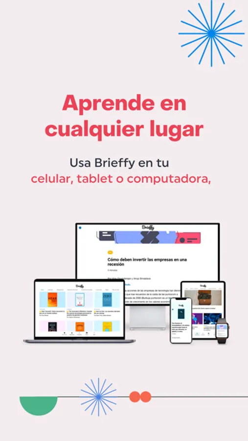 En Brieffy aprendes leyendo o escuchando textos y audios cortos en español, creados a partir de los libros de negocios y de desarrollo personal más vendidos y nuestra curación de fuentes expertas como: Deloitte, McKinsey, Y Combinator, Statista, Bloomberg, MIT, Harvard, Stanford, The NY Times, Financial Times, The Guardian, etc.