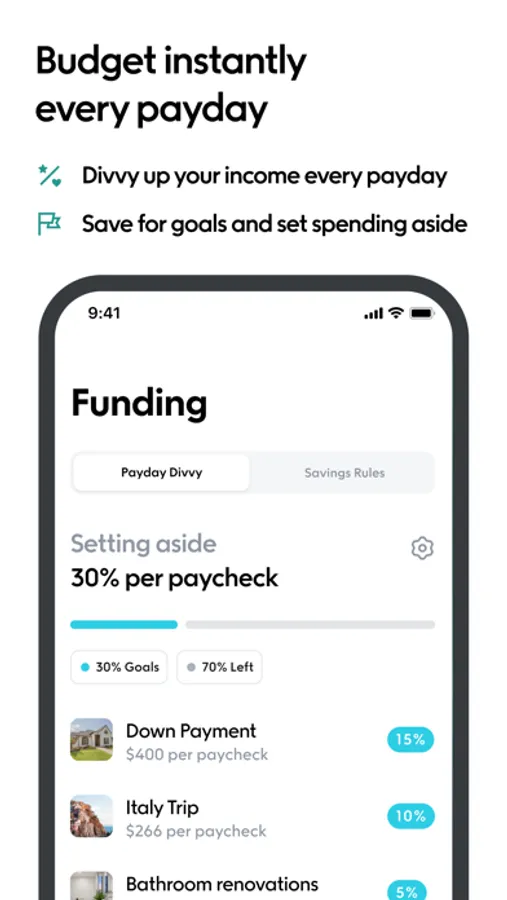 Smarter checking: Our FDIC-insured checking account gives you instant access to savings balances, instant free transfers from savings Goals, a Visa® debit card that works with Apple Pay & Google Pay, direct deposit with early access to your paycheck, and bill pay. All without any of the hidden fees regular banks saddle you with.
