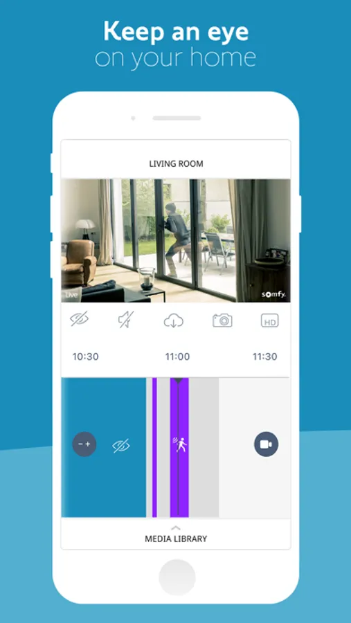 - Launch up to 2 pre-recorded TaHoma scenarios directly from the Somfy Protect app (requires a TaHoma premium or switch box)
