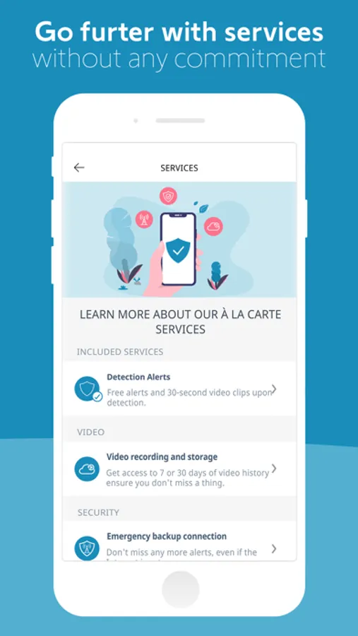 - Get notified in case of an alert and access your cameras to keep an eye on your home