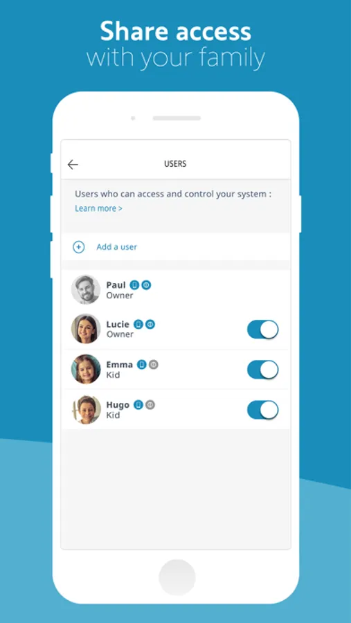 - Receive smart notifications that remind you to activate the alarm when you leave the house and inform you when your children come home from school (kids function)