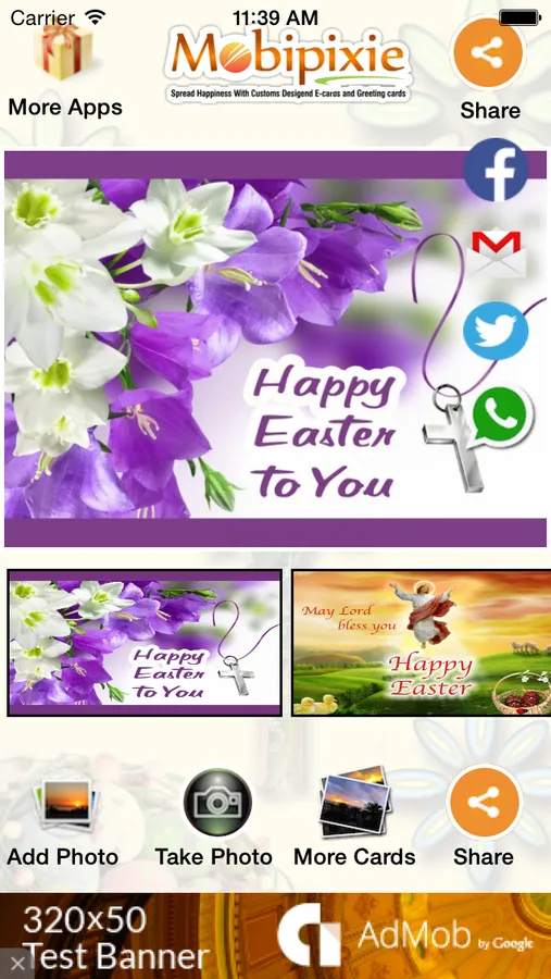3. Cards are ready to send by email, chat, what's App, Facebook post, twitter post, Instagram, google plus and other community and communication medias available in your device.