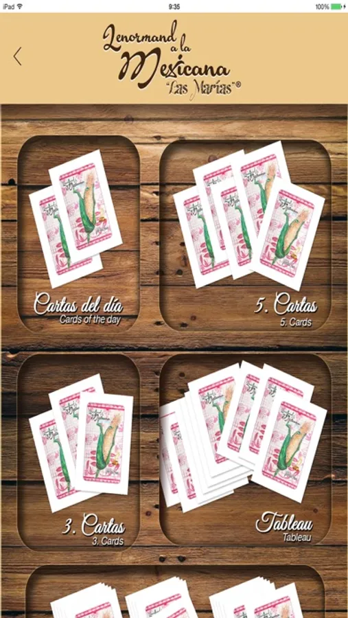 El usuario puede interpretar mediante la selección manual o barajado automático en versiones de "Lectura del día", "3 cartas", "5 Cartas", "Tableau" y "Grand Tableau"