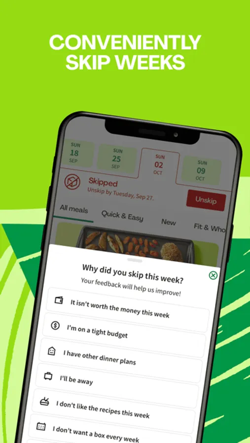 The HelloFresh app makes managing your weekly meal subscription simple. Just access your account on your iOS device to set your delivery day, swap out ingredients and recipes, or change the number of meals or the number of people you are feeding. Perfect whether you’re eating alone or cooking for the whole family!
