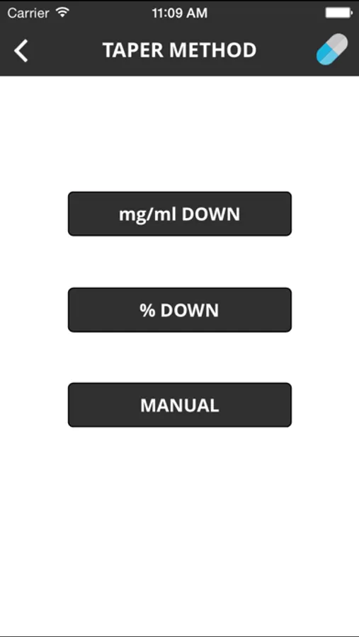 3) Allows the user to create a manual pill taper by specifying the pill strength, number of pills and duration of each step of the taper.