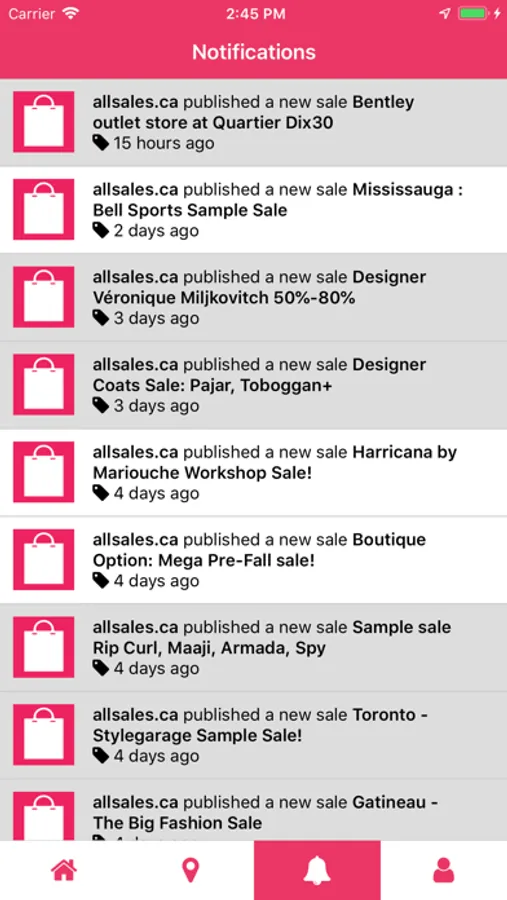 With allsales.ca's app, discover new sales every day and save up to 90% off on day-to-day goods in the following categories: clothing and accessories, babies and kids, home and garden, health and beauty, sports and leisure, electronics and computers, and much more!