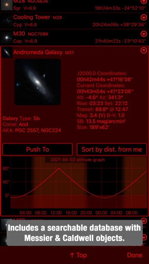 - Get help finding the DSO Database objects with your non-goto telescope with the Push-To function.