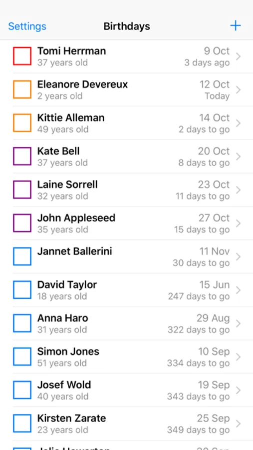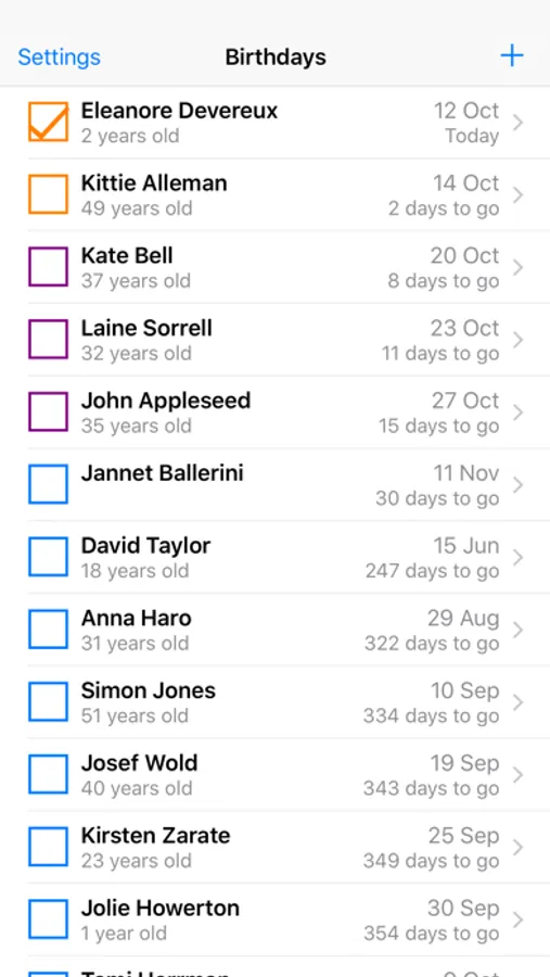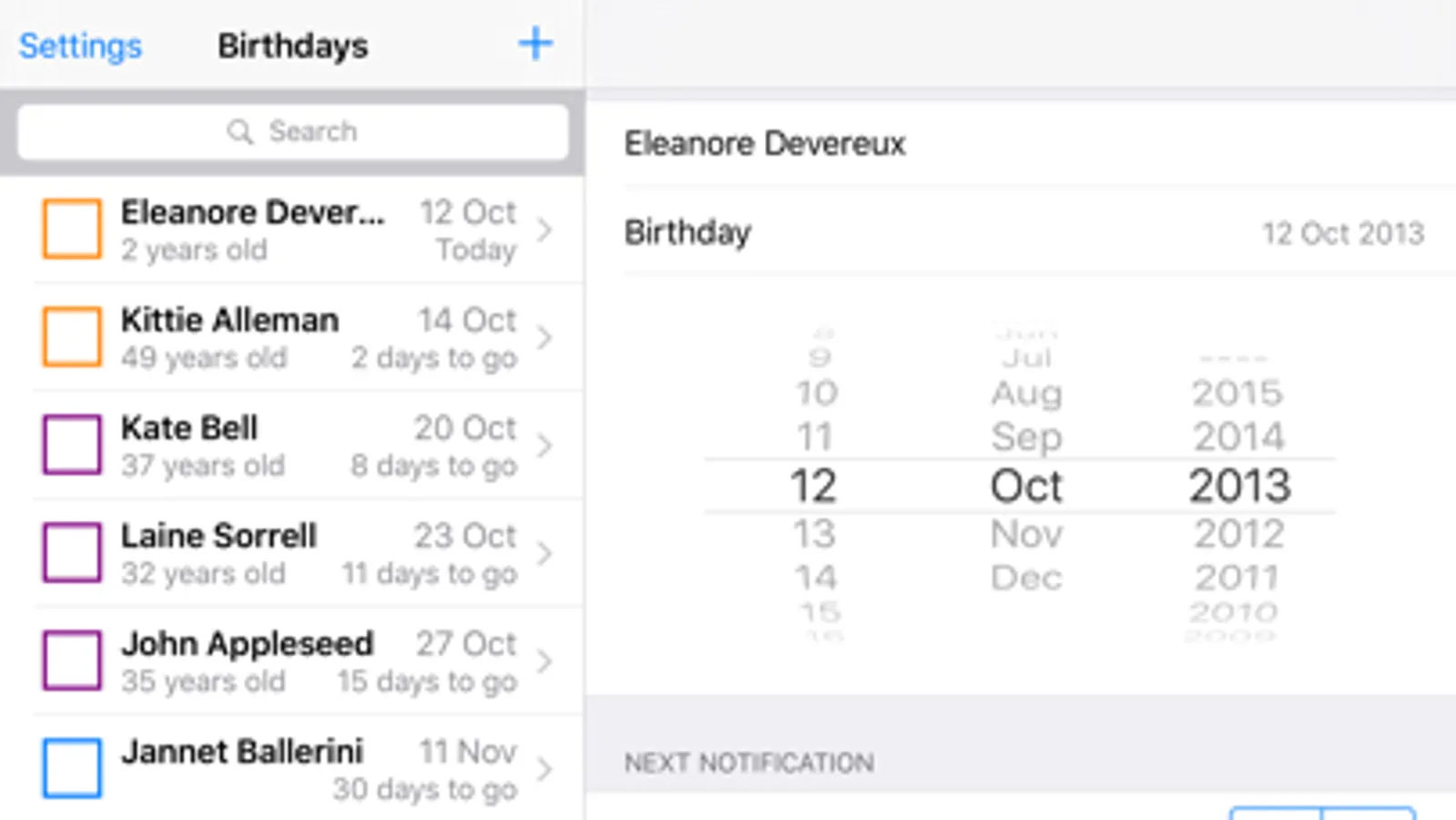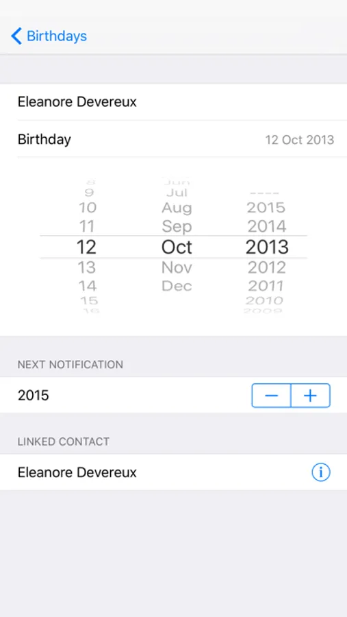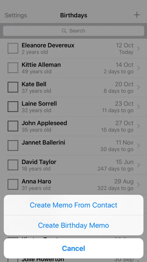 iCloud integration ensures that your up-coming birthday list remains synced across multiple iOS devices.