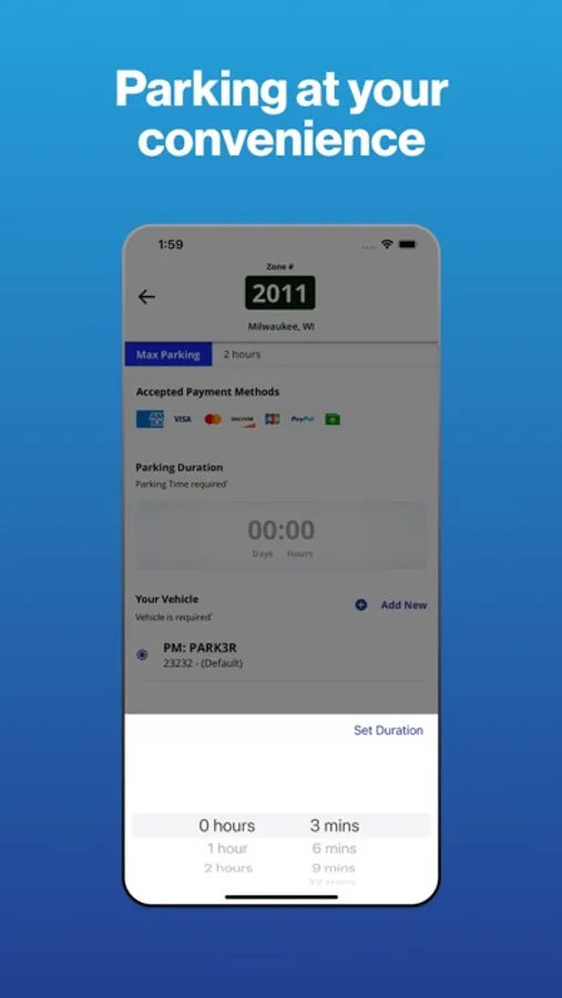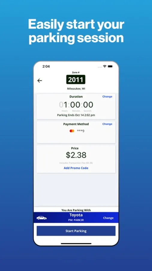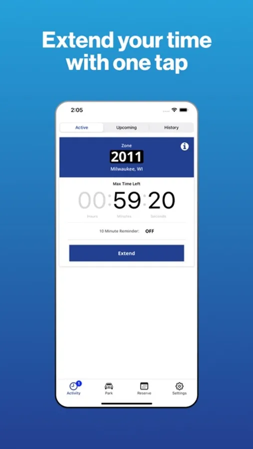 • Streets, Lots, and Garages: Enter the zone number on the posted signs in your area. Select the amount of time you want to park, and start your session. Extend time in the app if you are running late.