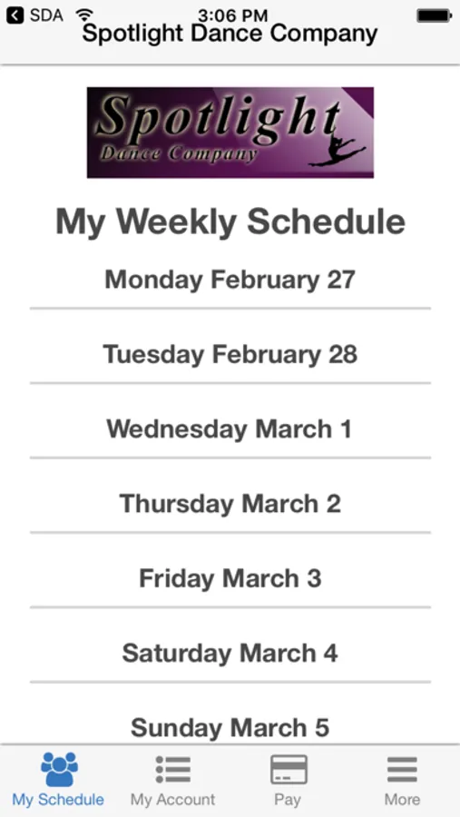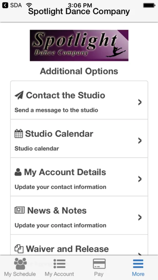 Manage your entire dance studio experience with the all new Spotlight Dance Company app. Enjoy mobile check-in and on the go tuition payments. Stay up to date with all the latest information from the studio. Never miss a beat.