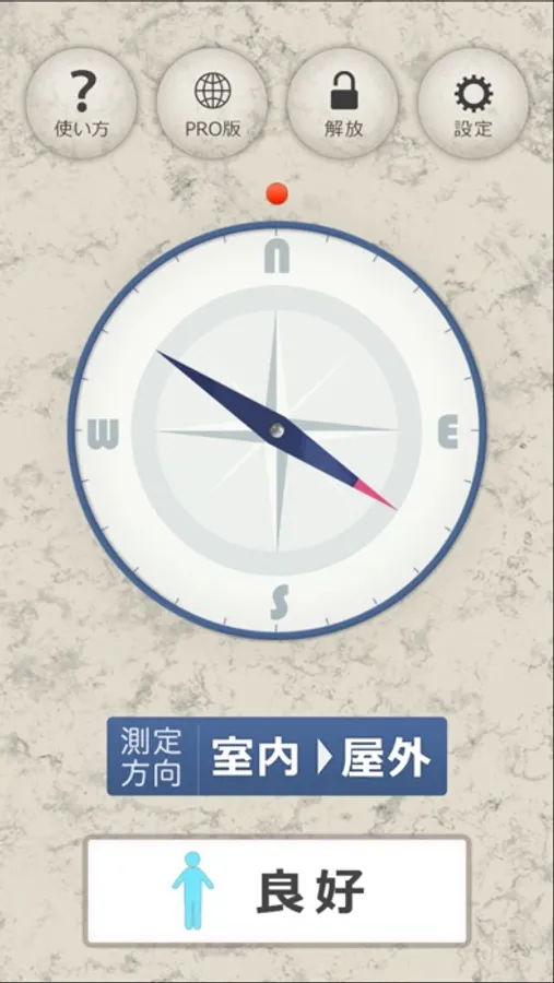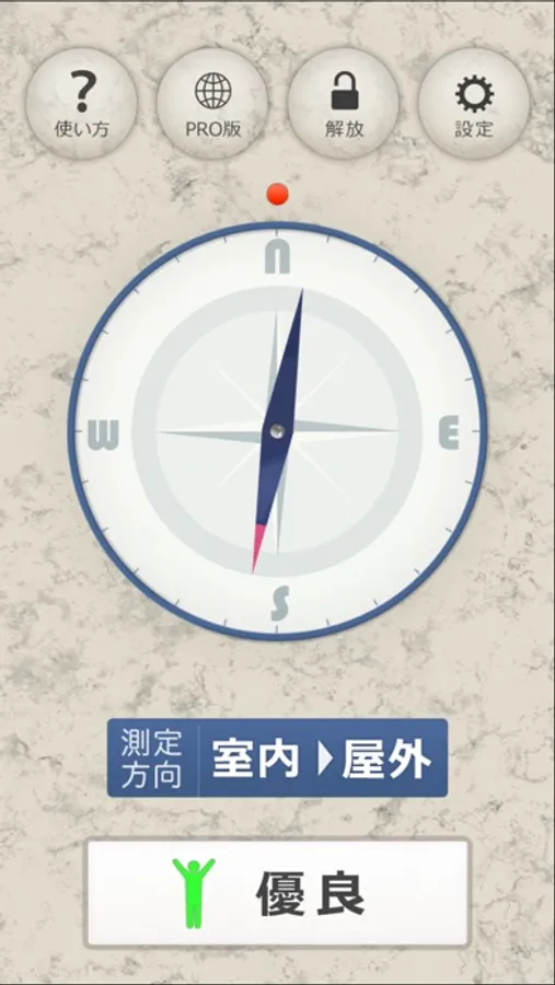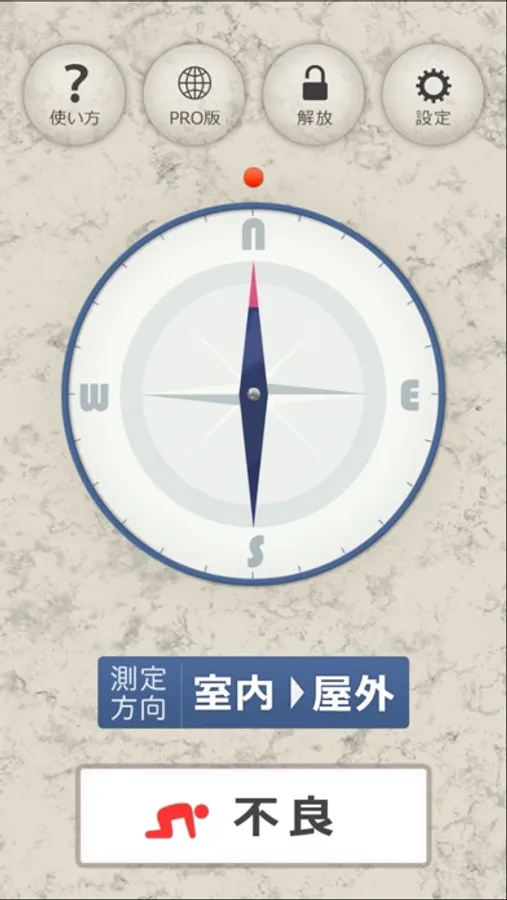 方角を示すだけの一般的な方位計アプリとは異なり、診断結果を「優良」・「良好」・「普通」・「不良」の4段階で自動判定する点に特徴があります。