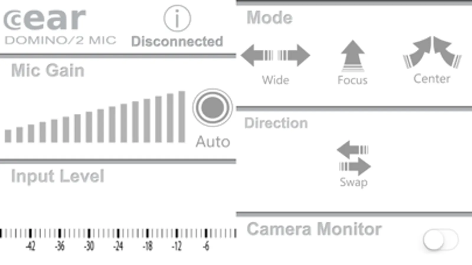 2. Set or confirm current Microphone Mode or Gain with “DOMINO 2MIC SETTING” app. ※WIDE MODE is factory-configured.