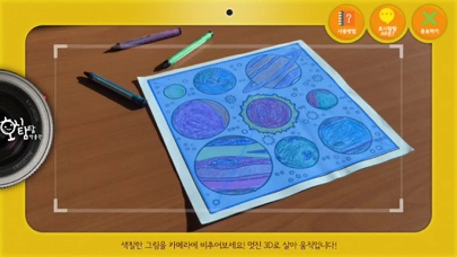 - 색칠된 페이지가 테블렛안에서 3D로 살아움직입니다.