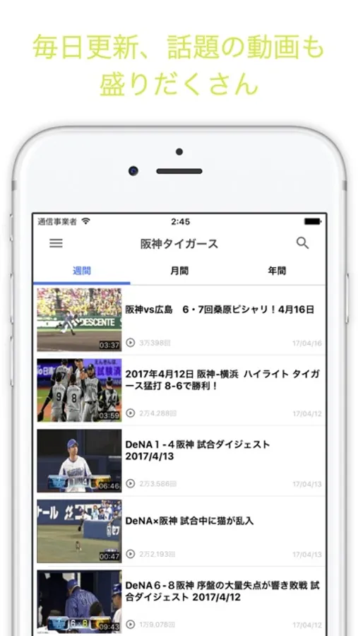 - 下方向へのスワイプ動作で阪神のプロ野球情報が更新できます。