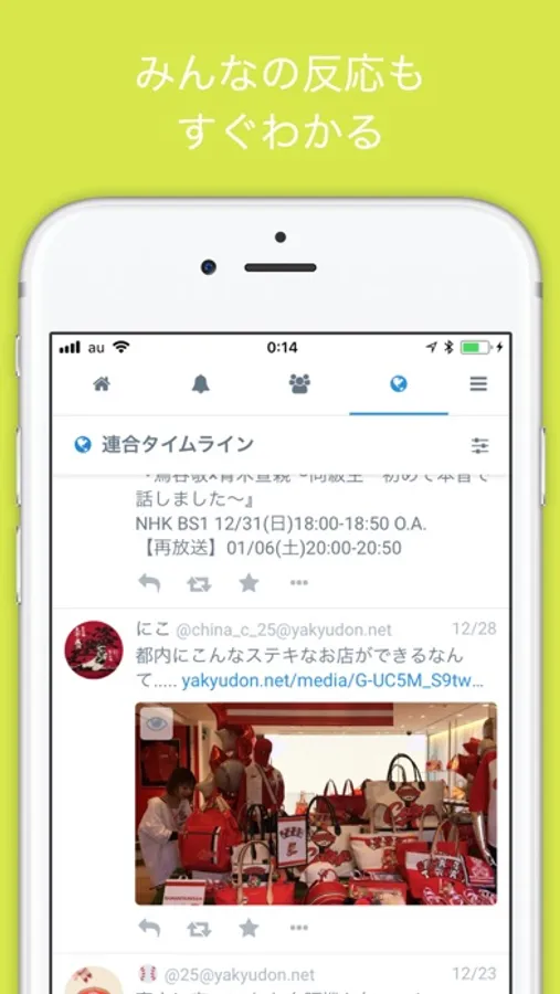 - 左右へのスワイプ動作でカテゴリの移動ができます。