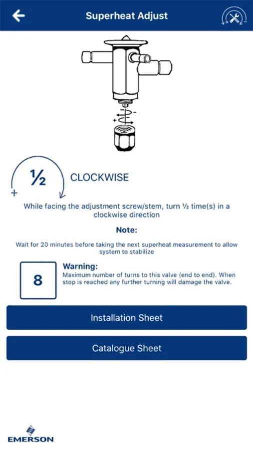 Superheat Adjust mobile app calculates the necessary number and direction of turns needed on various Emerson thermal expansion valves to get to your required superheat. It covers different refrigerants and evaporating temperatures. Simply put, it eliminates guess work in superheat adjustments.