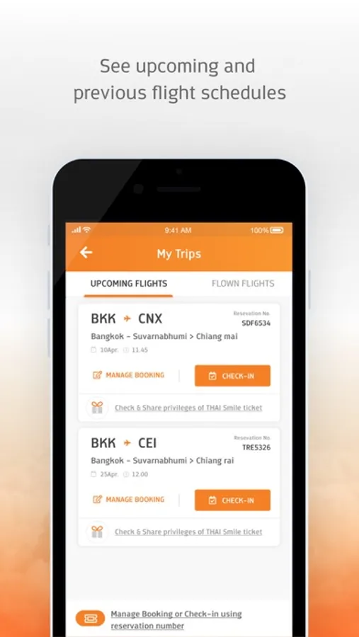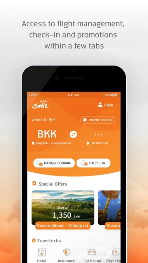 THAI Smile Airways Mobile Application invites you to explore the destinations, book your flight, manage or check-in your flights at one place.