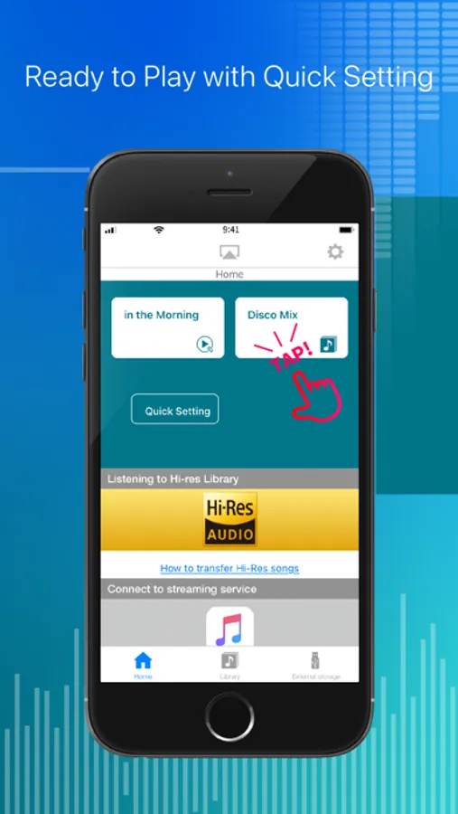 Using DLNA, you can transmit and play high-resolution audio wirelessly without down-converting. You can also remotely control a NAS within the same network and play stored songs.