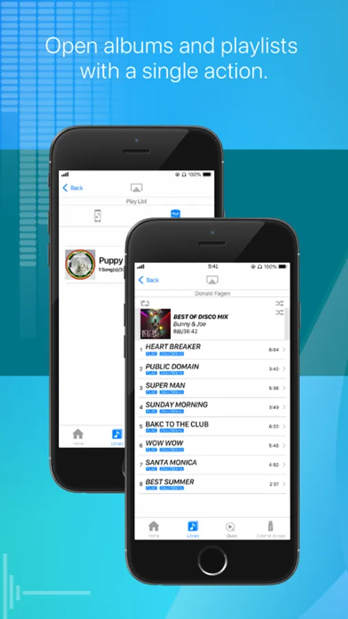 You can create your own sound using Preset EQ,10, 15Band Graphic EQ, and Spline EQ.