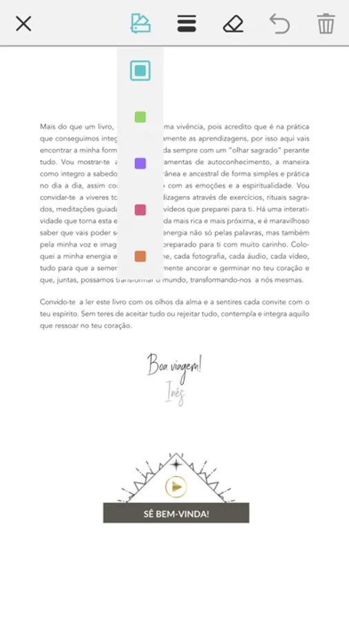 Nos eBooks pode realizar anotações e definir destaques de leitura, organizados por cores definidas por si. Também poderá, posteriormente, encontrar estas notas filtrando-as por cor.