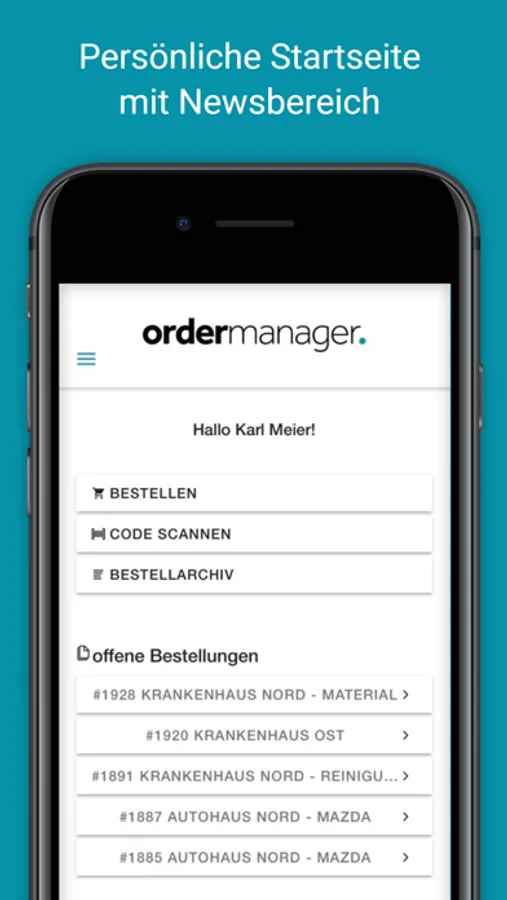 Die ordermanager App bildet die wichtigsten Funktionen, die über die Weboberfläche genutzt werden können, in einer praktischen und einfach zu bedienenden App ab.