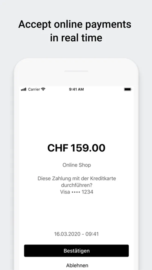 “one” App gives you the very highest level of security. Nevertheless, it is still essential that you use your smartphone with care, take appropriate security measures and carefully check the confirmation requests you receive through “one” App. Your due care and reporting responsibilities are specified in the Conditions for the use of “one”. Further information on security and the use of “one” is available at https://one.viseca.ch.