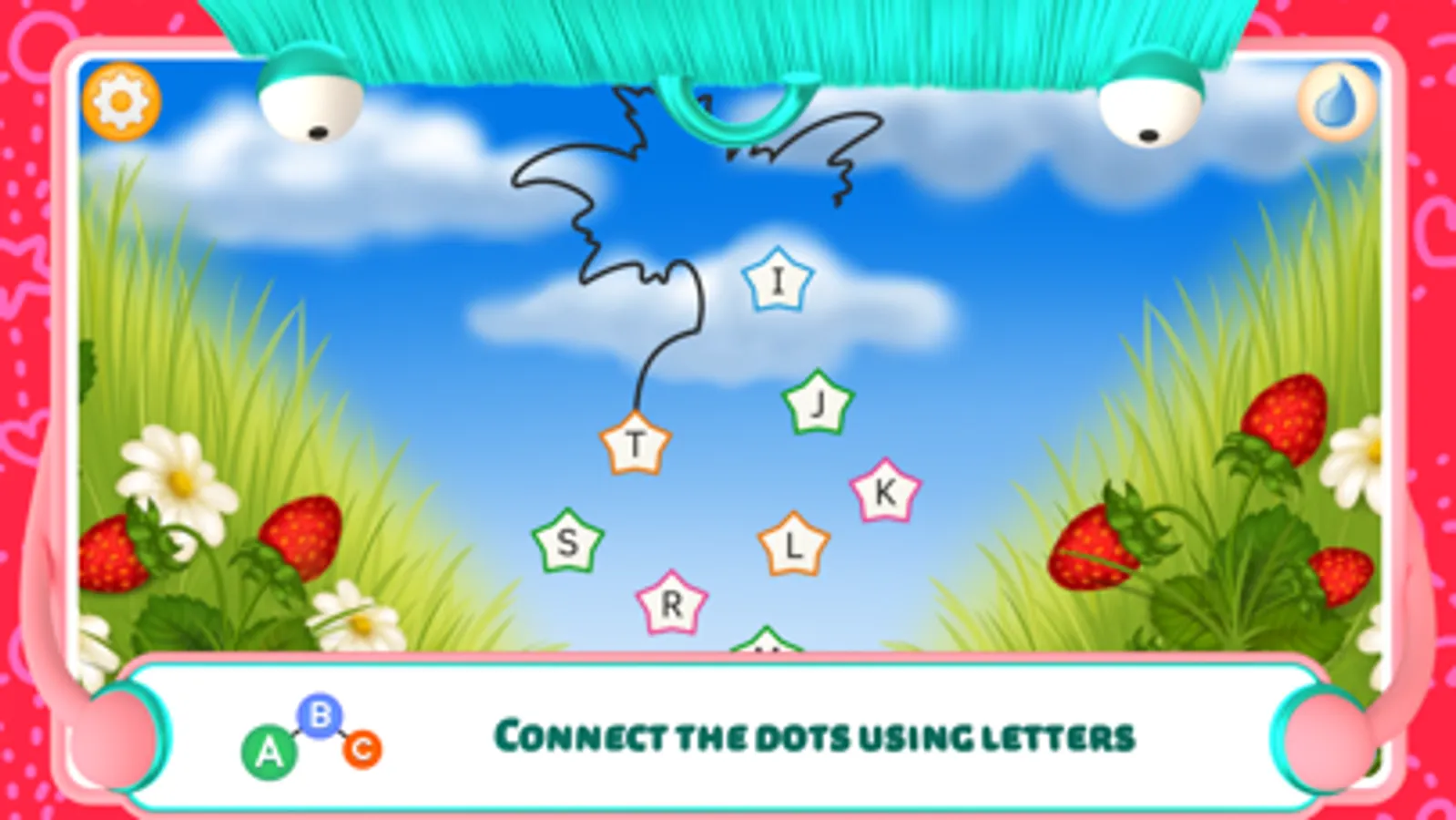 Those studying the alphabet can choose to connect points by letters. It is important that children know letters as early as possible, since it is essential for learning to read and write. But knowing the order of letters in the alphabet is also very important! This can be achieved by connecting circles with letters in the right sequence.
