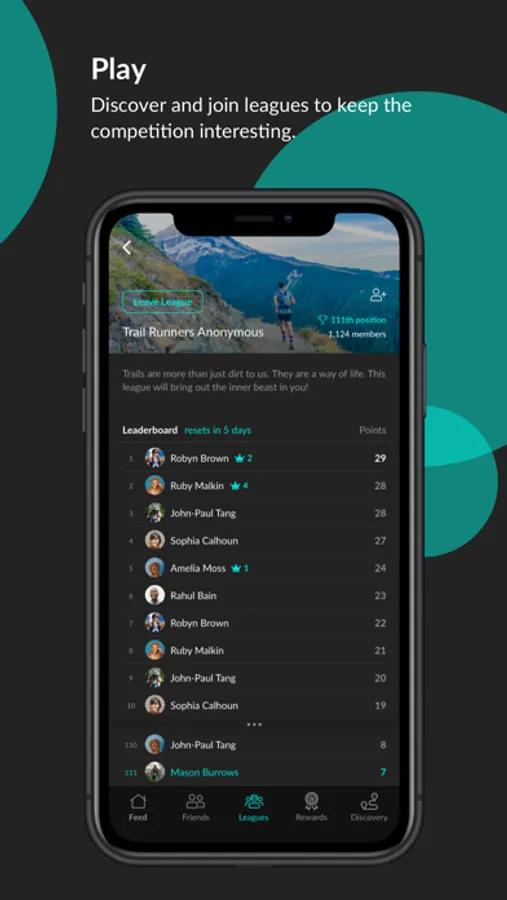 - Create and join activity leagues to compete with friends, teammates and anyone from anywhere around the world
