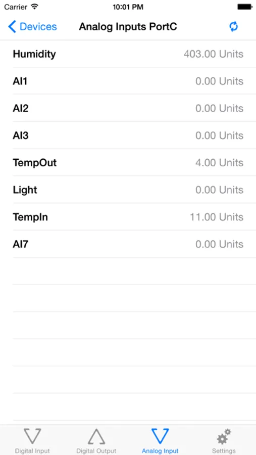 Here you can access spceific inputs for temperature, humidity, voltage, current and so on. Some of the devices support such special inputs where the input values are obtained in such units and the DAE-iModules app show them in this tab.