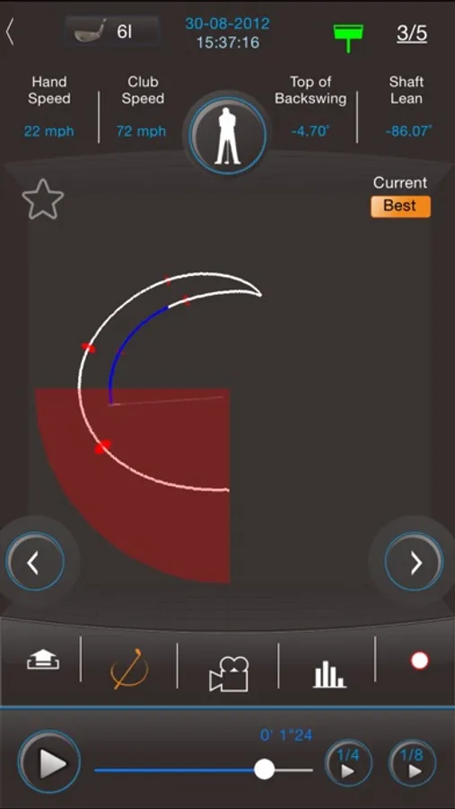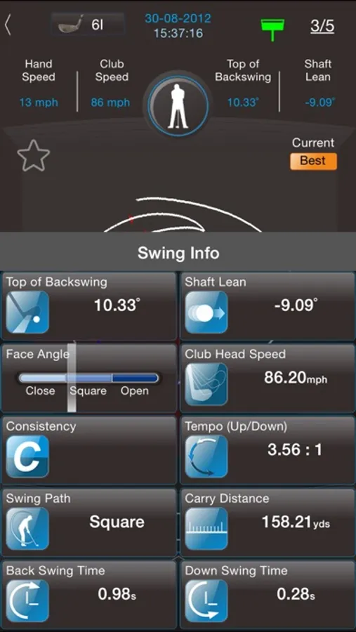 5. Shaft lean at impact - It helps to identify if you have hit the top of the ball, bottom or square at impact. Directly related to face angle.