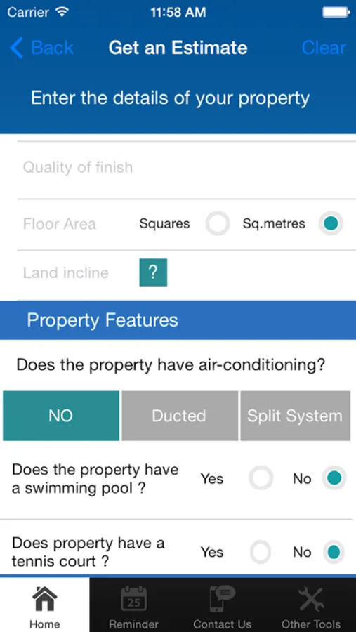 A simple interface provides users with a list of questions to complete. The calculator will then determine the minimum and maximum cost range for the replacement of a building.