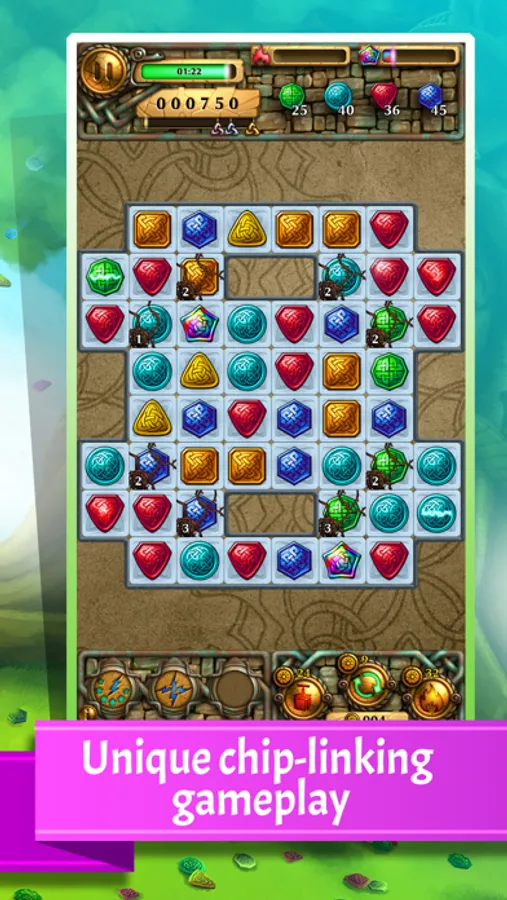 String together chains of chips vertically, horizontally or diagonally. Cross-over linked chips and back-track for higher scores!