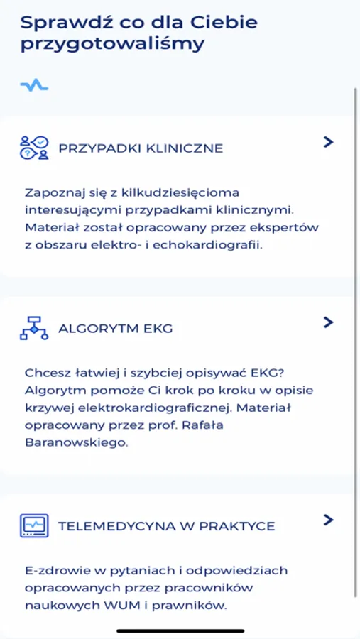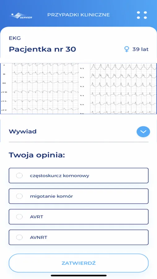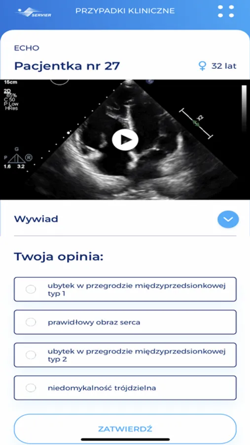 • bazy interaktywnych przypadków klinicznych z obszaru EKG i echokardiografii, które można rozwiązywać w postaci quiz’u, opatrzonych komentarzem ekspertów;