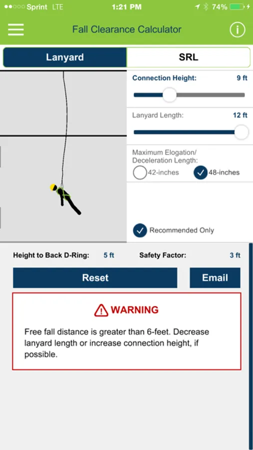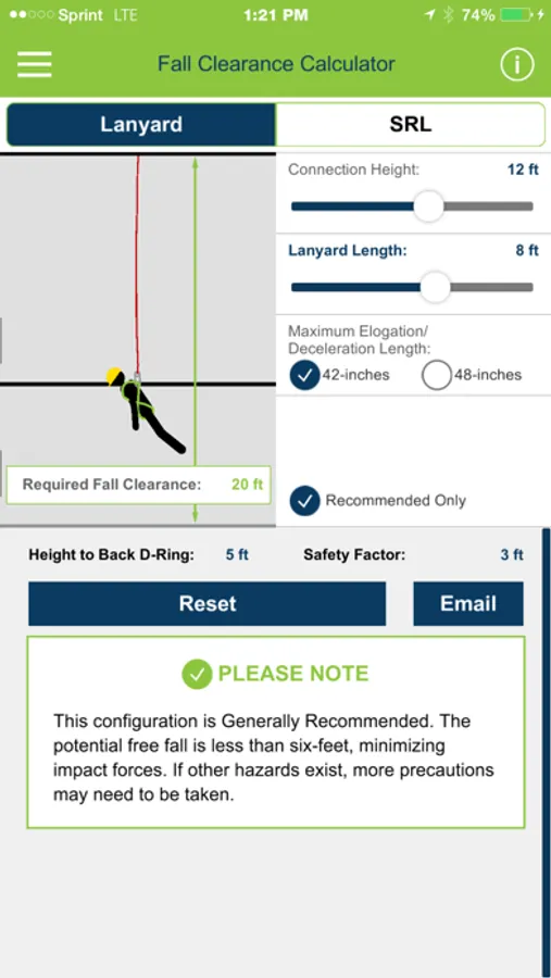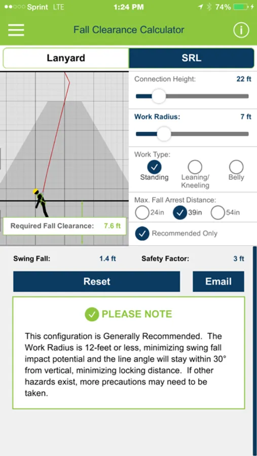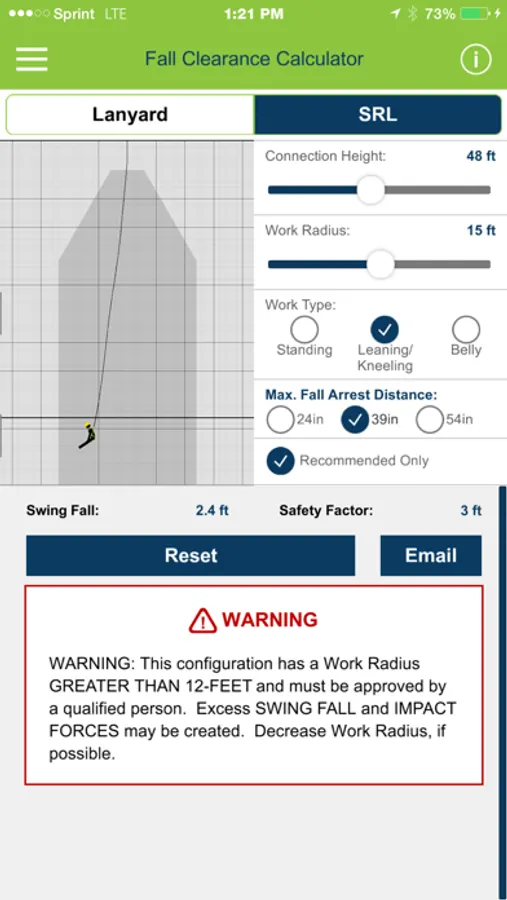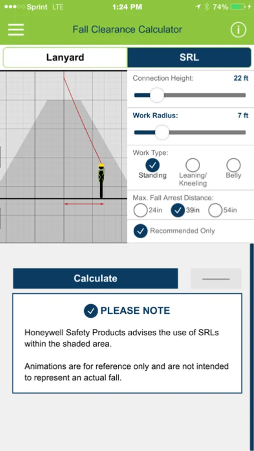 The Miller Fall Clearance Calculator App allows safety workers to calculate the fall clearance distance for Shock Absorbing Lanyards and Self-Retracting Lifelines. The Fall Clearance Calculator will also calculate the swing fall distance for SRLs.