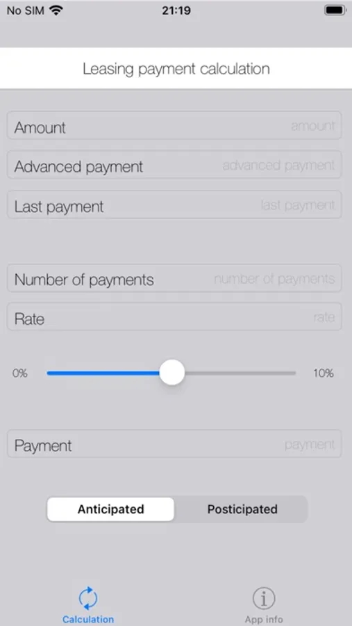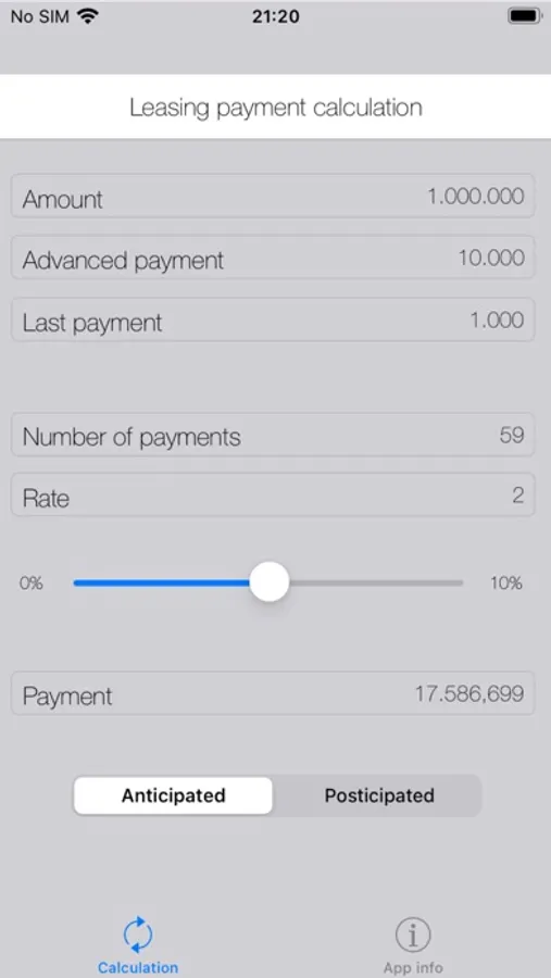 This app let you calculate your leasing both with anticipated or posticipated payments.
