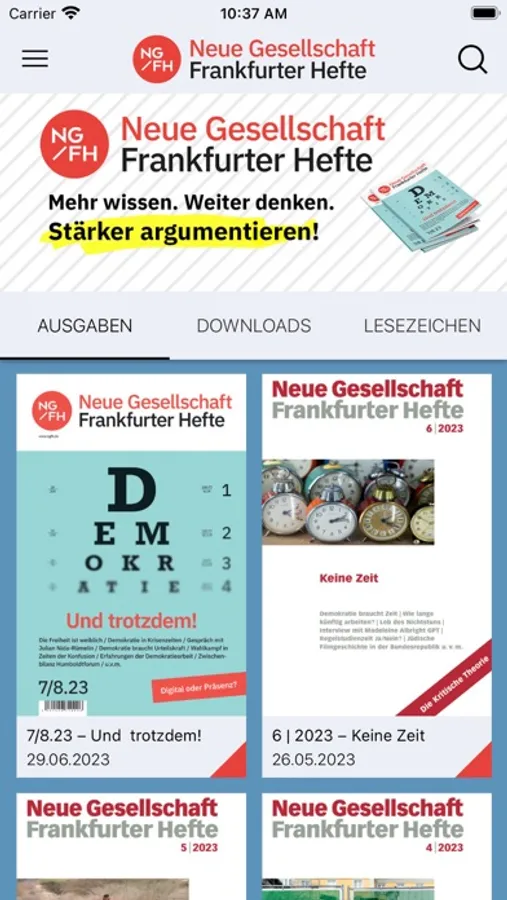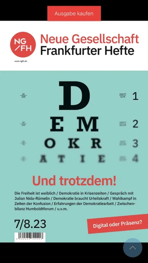Als digitale Ausgabe der Zeitschrift Neue Gesellschaft/ Frankfurter Hefte bietet die NG/FH-App für Sie die Inhalte der Printausgabe mobil mit dem »digitalen Plus«: