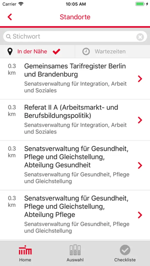 Recherchieren Sie verschiedene Standorte mit Kontaktinformationen und angebotenen Dienstleistungen. Über die Ortungsfunktion Ihres Mobiltelefons können Sie die Standorte in Ihrer Nähe ermitteln.