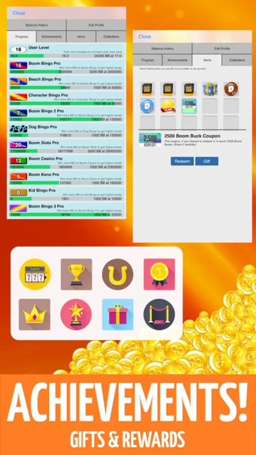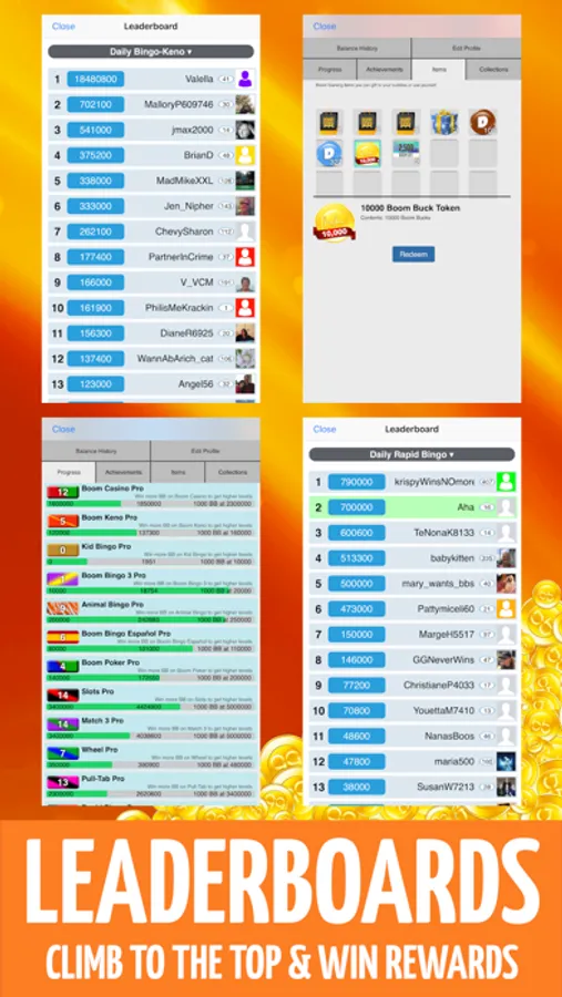 - BINGO your way to HUGE WINS while collecting achievements and becoming #1 on the LEADERBOARDS.