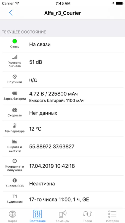 - Просмотр списка подключенных устройств в вашем ЛК с указанием их текущего статуса, последнего полученного местоположения, скорости и направления движения.