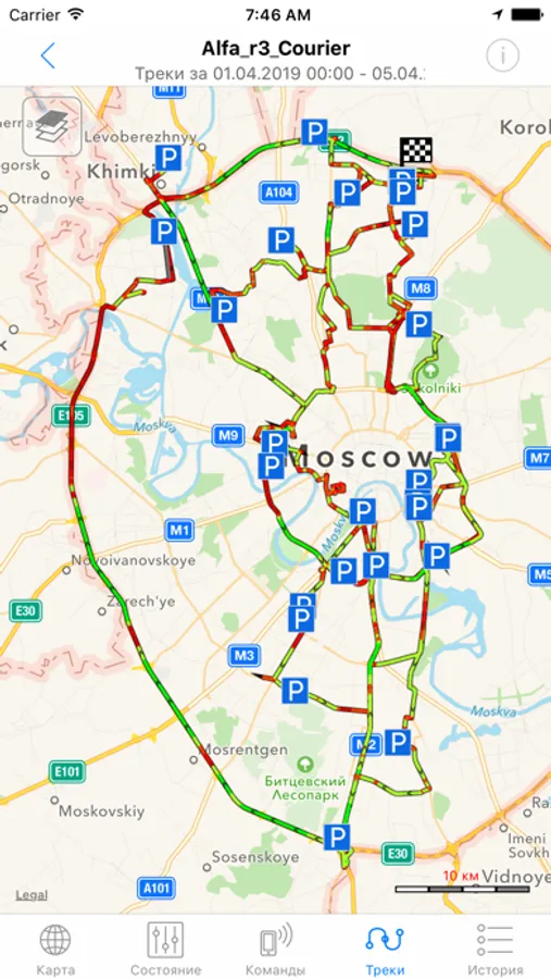 - Просмотр накопленной суточной статистики о передвижениях объекта, таких как пробег, средняя и максимальная скорость, время в пути, расчетное количество потребленного топлива (только для устройств, работающих в режиме мониторинга).