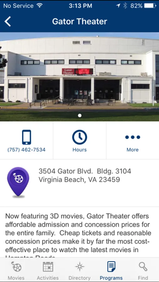 • Real-time movie listings for NAS Oceana and JEB Little Creek theaters