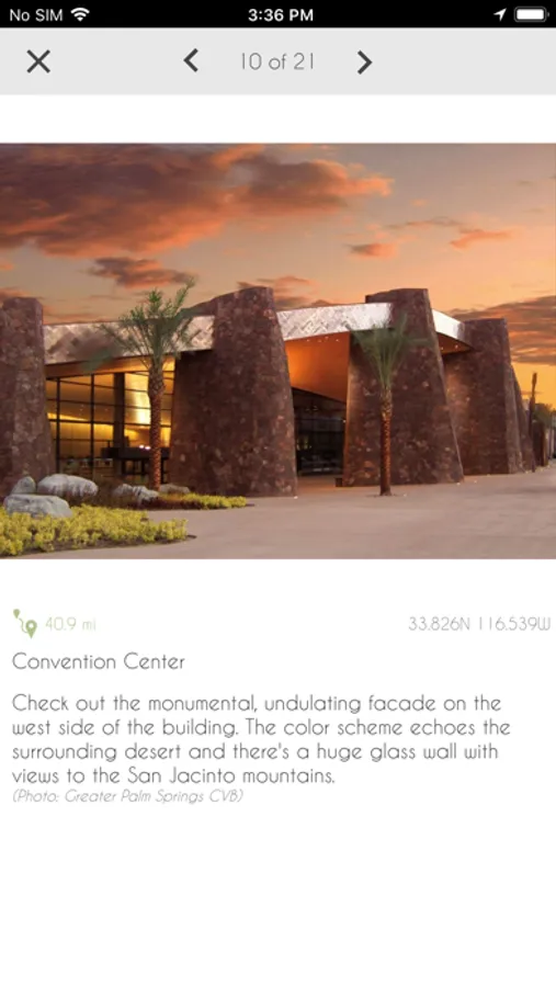 Use this app to discover 21 places to go in Palm Springs as sequential place-based narratives with photos and captions linked to an interactive map.