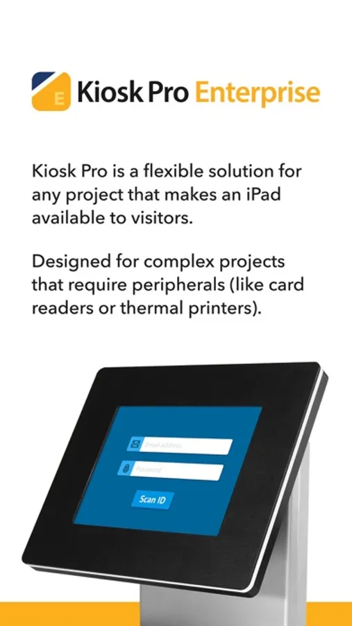 Kiosk Pro Enterprise builds on the functionality included in our Plus version, adding our JavaScript API to access common kiosk peripherals like thermal printers and magnetic stripe card readers, to scan QR and barcodes using the iPad’s cameras, and to send full-screen content to an external display.