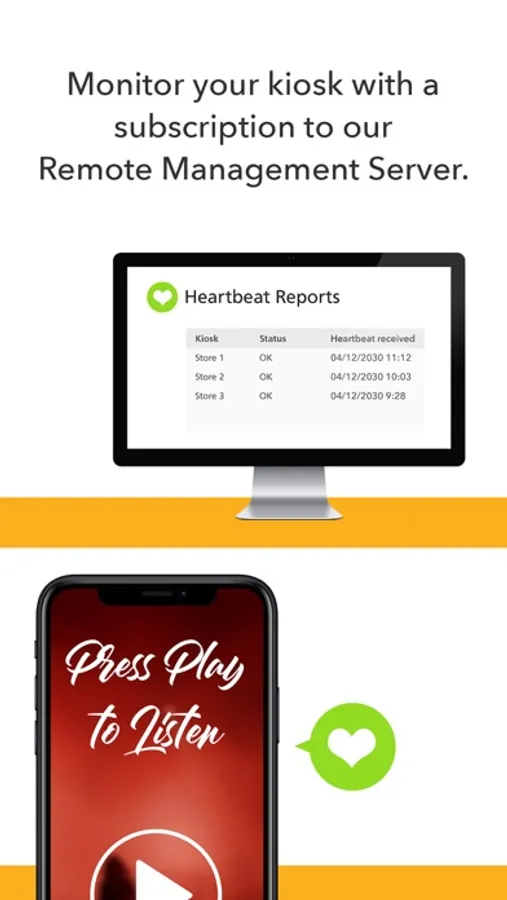 • Have your kiosks check in with regular heartbeats and monitor all your kiosks from a single location through our cloud-based Remote Management Server.