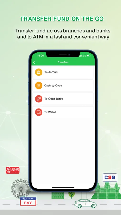 You can instantly pay the bills, transfer to other banks, view term deposit accounts, cash-by-code, top up phone, check account balance, and enjoy more great features.